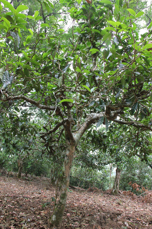 穿原始森林,就是百年古茶樹生長地,群樹環(huán)繞,遮光蔽蔭。茶樹樹根之間距離足有兩米,而分枝繁茂程度卻可以把茶樹緊密相連。站在茶樹邊,頭頂有一把天然蔽蔭傘。而遠(yuǎn)看,連片生長的茶樹,像是海中波濤,層疊之時,卻是滿眼新綠,這樣一片古茶樹密集生長,還孕育出茶王樹的土地,需要非常多的養(yǎng)分供給,和漫長時間的沉淀。