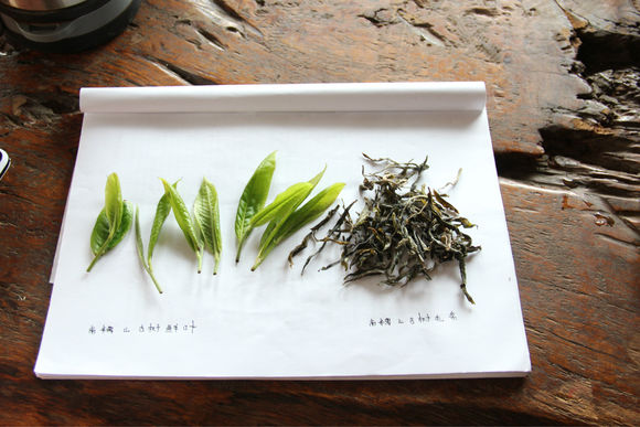 走過的茶園不少,茶園的生態(tài)環(huán)境是直接決定茶湯入口的舒適程度。南糯山丫口老寨這片古茶園,古樹環(huán)抱茶樹,古樹落葉源源不斷為茶樹提供天然養(yǎng)料,落葉鋪滿腳下所踩的每寸土地。對比過生長環(huán)境不同的茶樹,落葉形成有機(jī)養(yǎng)料的茶園生長的茶樹鮮葉,葉片細(xì)嫩光澤飽滿葉片柔軟。而南糯山茶樹屬于大葉種茶樹,葉片較長。選料南糯山制作茶葉,干茶條索長,色澤油亮墨綠中帶翠綠色,因為鮮葉具有飽滿光澤,干茶也能感受到烏潤感。