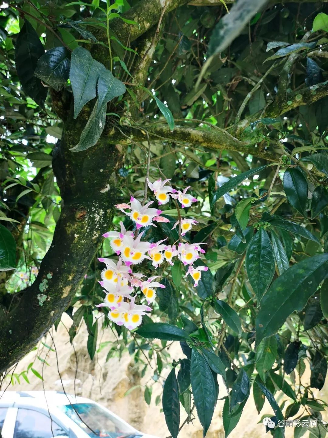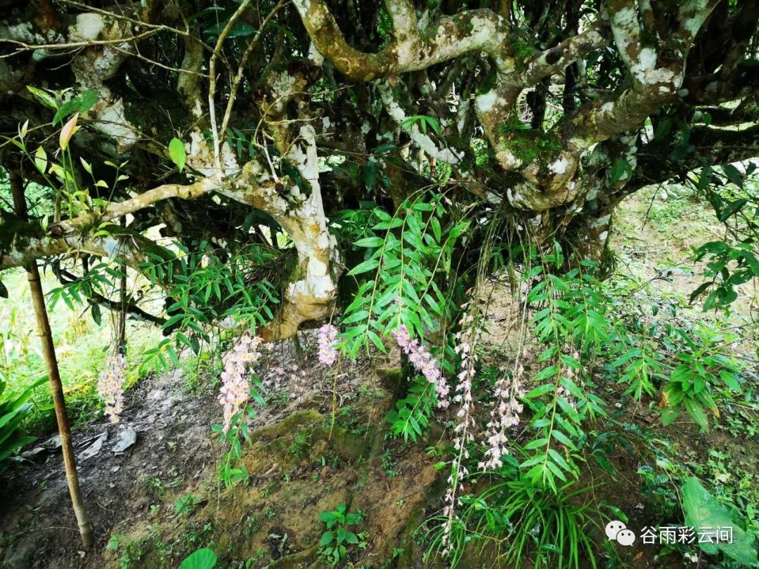 其實,這些茶樹上的石斛,多半是瑤族同胞后來栽種上去的,但綠樹鮮花分外和諧。古茶樹如長者慈祥呵護著嬌艷花朵。