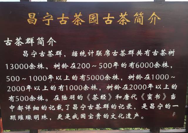 2006年,縣人民政府邀請了中國茶科所虞富蓮研究員、云南農(nóng)業(yè)大學(xué)茶學(xué)專家蔡新教授和云南省茶科所王平勝研究員等專家對11個(gè)點(diǎn)的古茶園和最大古茶樹考證,結(jié)論是:在昌寧縣生長的古茶樹植株不亞于云南省已報(bào)到的千年以上古樹茶,表明昌寧利用茶葉歷史悠久,昌寧是名副其實(shí)的“千年茶鄉(xiāng)”。同年,國際茶葉專家、中國工程院院士、中國茶葉科學(xué)研究所院士陳宗懋專為我縣題寫了“千年茶鄉(xiāng).昌寧”字匾。2016年11月,昌寧邀請中國茶葉研究所虞富蓮研究員、云南省茶科所王平勝研究員和何青云副研究員等專家對現(xiàn)遺存與右文碧云寺的古茶樹進(jìn)行調(diào)查鑒定,專家組一致認(rèn)為:昌寧縣屬我國茶葉最適宜生長區(qū),地處茶樹原產(chǎn)地中心,碧云寺古茶樹屬栽培型灌木小葉種,種植于明朝洪武年間,樹齡在600年以上,對昌寧茶文化發(fā)掘整理具有重要的史料和學(xué)術(shù)價(jià)值。