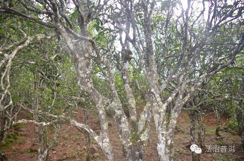 報道組一行來到古茶山林里,這里的古茶樹枝條與其他古茶山的茶樹枝條不一樣,這種茶樹的枝條象彎彎柳條一樣纖細,有的長約數(shù)米,在風(fēng)雨中會隨風(fēng)雨而舞 動。仔細一看,婉如一位穿著輕紗的少女,在大自然的呵護下,伸出柔情的手、扭動妙曼的腰肢,在山野間翩躚起舞。記者發(fā)現(xiàn)在打筍山古茶區(qū)和老烏山古茶區(qū),隨 處可見樹齡在百年以上的古茶樹,這種茶樹葉片很少,主干和岔枝裸露可見,岔枝上長著許多又細又長又軟的細藤,只有藤條尖頂長著幾個嫩芽和幾片嫩葉,這種茶 樹被稱為藤條茶。