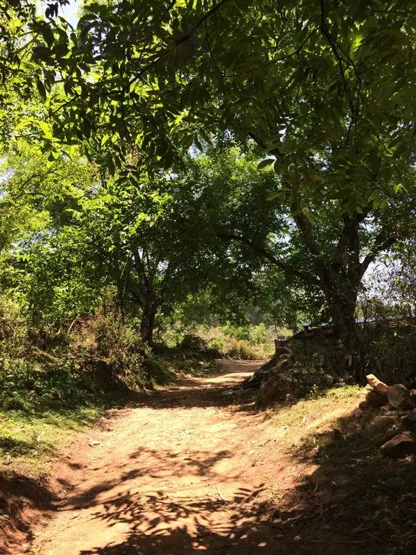 終于,車子翻過(guò)山埡口轉(zhuǎn)了個(gè)彎,眼前豁然開(kāi)朗起來(lái)。純凈的陽(yáng)光里,眼前的整個(gè)山谷被濃郁的綠意幾乎塞得滿滿當(dāng)當(dāng),一個(gè)古樸的小村莊就閃現(xiàn)在半山坡的綠蔭里,村前屋后是成片的古茶林和高大茂盛的核桃樹(shù),山上和箐底則長(zhǎng)滿了郁郁蔥蔥的林木。微風(fēng)吹過(guò),清新的空氣在燦燦的陽(yáng)光中迎面飄來(lái),一時(shí)間心曠神怡。剛才飽受灰塵顛簸摧殘的心肺,頓時(shí)感覺(jué)滋潤(rùn)了許多。