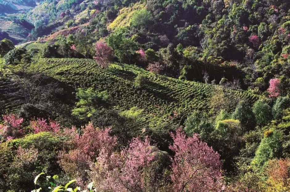 1月16日,參加西雙版納州攝影協(xié)會與勐??h攝影協(xié)會組織的年會活動。我們的目的地是巴達賀松。這個季節(jié),正是山上野櫻花盛開的時候,一路都能看到漫山遍野絢爛無比的櫻花,或生長在那些茂密的森林中,或是生長在茶園里。放眼望去,四周的山上到處是簇簇紅顏,為這冬末春初顯得干燥的山野帶來奔放的活力。