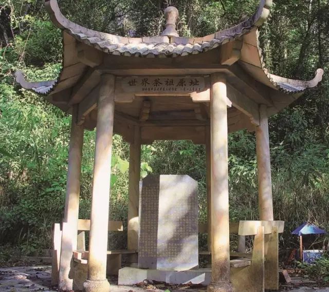 在茶王樹原來生長的地方,被人們修建了一座亭子,并立了一塊碑記載茶王樹的歷史。