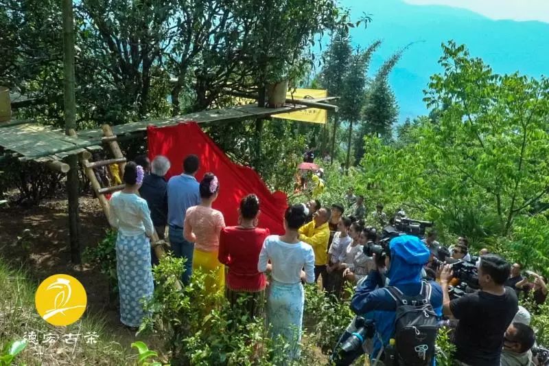 祭祀結(jié)束后,參加活動的領(lǐng)導(dǎo)和嘉賓共同為官寨茶王樹跨紅揭彩。