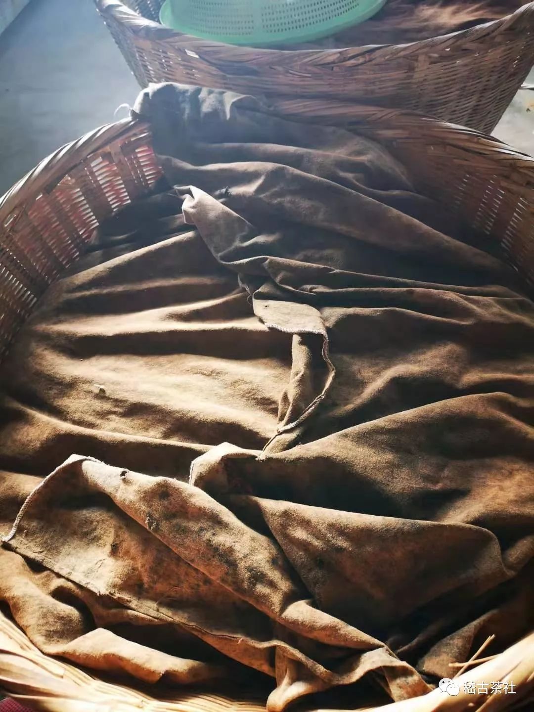 滇紅茶的發(fā)酵方法是將揉捻好的茶葉用干凈的棉布包裹好后,放入籮筐之中靜置。