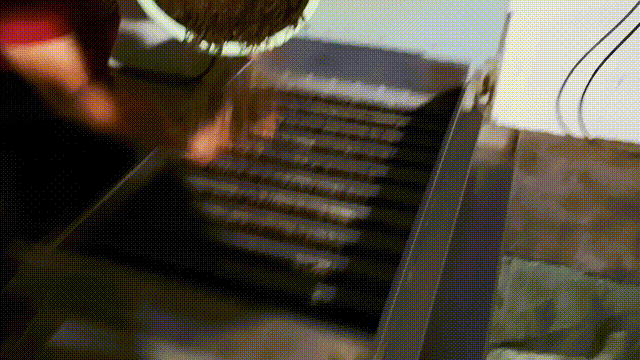 它的工作原理很簡單。將機(jī)器預(yù)熱到一百度后,開動機(jī)器,機(jī)器上方帶有凹槽的板面便會來回晃動。