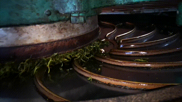 鍋爐底部會持續(xù)放出適量的茶葉,并在帶有螺旋凹槽的底盤上來回旋轉(zhuǎn),以達(dá)到揉搓茶葉的目的。