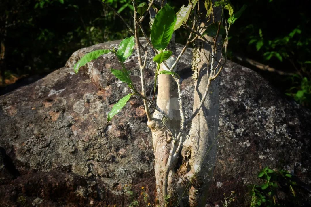 待云霧散去,古茶樹與巖石共生之景象便一一浮現(xiàn)于眼前。茶圣陸羽在《茶經(jīng)》中說道:茶者“其地,上者生爛石,中者生礫壤,下者生黃土”;蔡襄《茶錄》說:“茶生石縫間,蓋精品也”。先圣在長期的實踐總結(jié)出茶中上品者,當(dāng)屬于石縫里所生之茶
