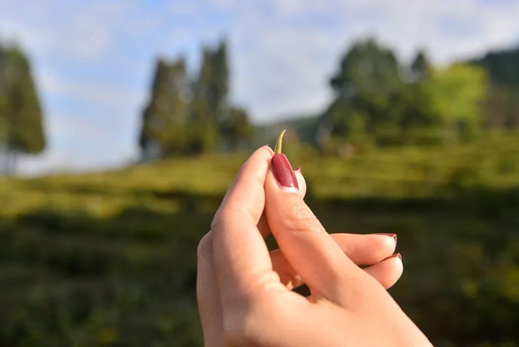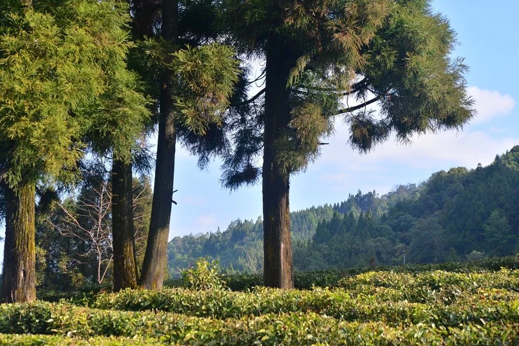 大概問候一下懵懂新芽,白云左右遮攔,終于還是讓陽光領了一眾飛鳥自頭頂躍過。斑駁松葉點綴著茶影子,探手就驚下一地的霜露。