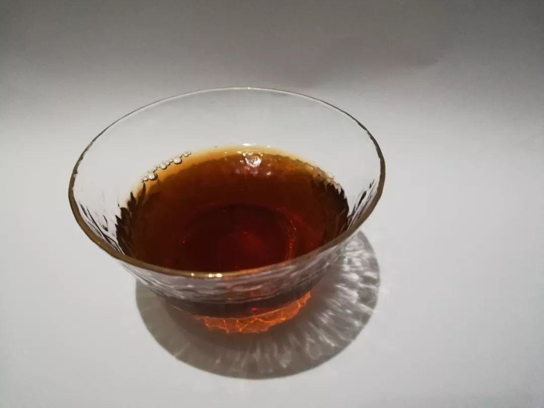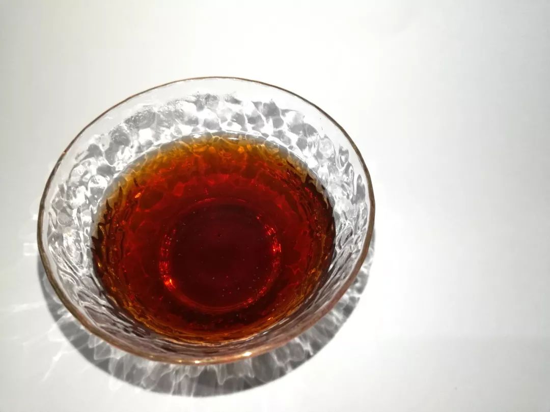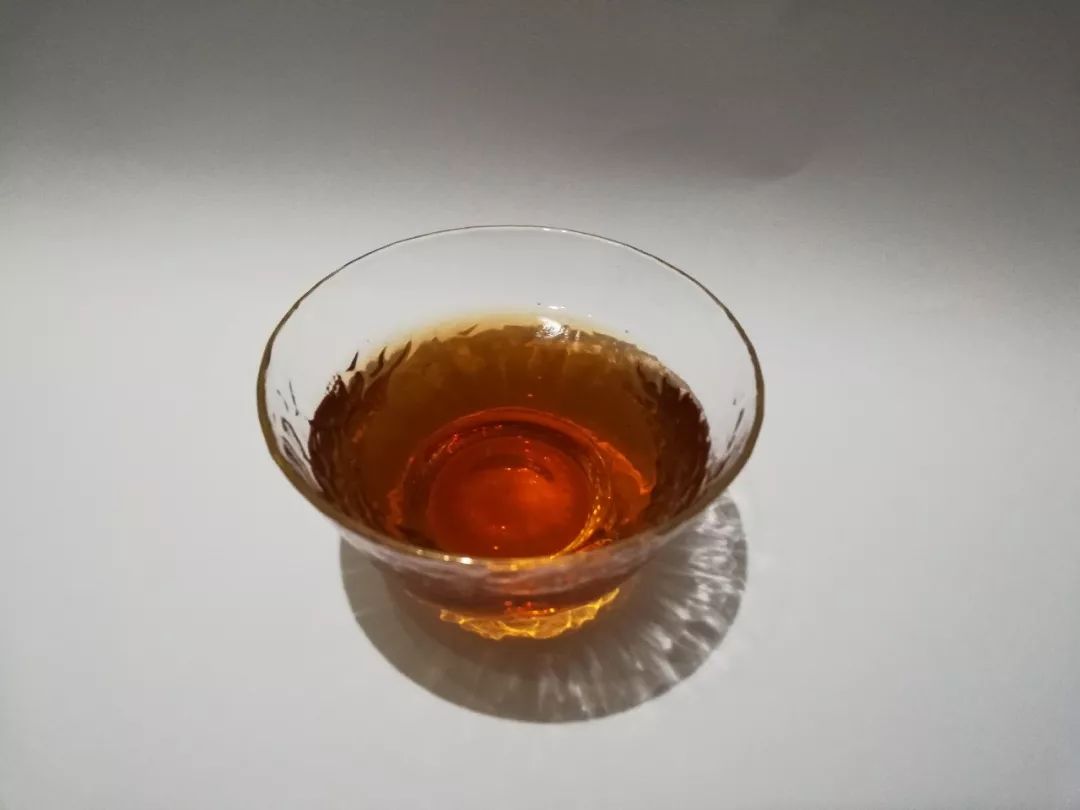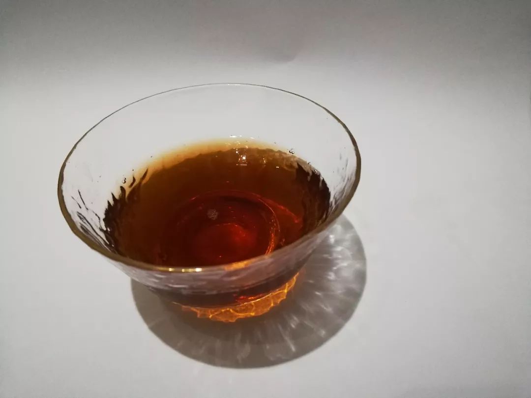 第8泡:后面自己都是用沸水悶泡了,保證了湯色如圖般紅亮,但相較之前湯感變薄了許多,從厚重轉(zhuǎn)為柔甜順滑,雖然滋味變淡,但茶湯更晶瑩剔透。