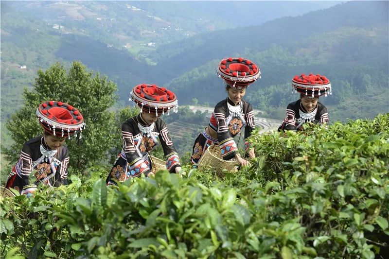茶樹叢中,有屋舍儼然,青瓦粉墻,映襯著碧綠枝葉,果然是古風(fēng)依然。其實(shí)這樣的場景,在昌寧并非獨(dú)此一處。昌寧海拔從接近三千米到數(shù)百米,地形立體,高低落差極大,這樣的地形使季風(fēng)在此停留,形成豐沛降水,諸多山區(qū)云霧繚繞,空氣溫和濕潤。海拔1400米至2300米之間,堪稱茶樹生長的黃金地帶。整個(gè)昌寧縣樹齡較長、面積較大、具有代表性的古茶園錯(cuò)落分布在田園鎮(zhèn)石佛山、漭水鎮(zhèn)黃家寨、溫泉鄉(xiāng)聯(lián)席村芭蕉林、破石頭、茍街鄉(xiāng)阿干粱子、大田壩獅子塘山、漭水鎮(zhèn)沿江村、羊圈坡等地。如此多的古茶樹著實(shí)讓我吃了一驚。