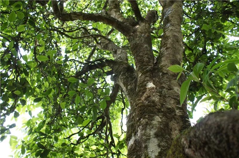 5月初,雨后,空氣溫潤透涼,我們在前往天堂山的路上,一路驅(qū)車在山道盤旋,得昌寧朋友指引,轉(zhuǎn)到一個(gè)叫做沿江的村落。車停穩(wěn)之后,順著臺(tái)階向上,開始還覺得這里與曾走過的茶山似曾相識(shí),并沒太多感覺,直到上得坡上,才發(fā)現(xiàn)這里田間地頭,全是清一色的高大古茶樹,有些茶樹居然幾人合圍,可想而知?dú)v經(jīng)了多少年代的云淡風(fēng)輕。當(dāng)?shù)嘏笥呀榻B道,這些古樹,全部是人工栽培型茶樹,茶本身是一種生長緩慢的植物,如此高大的植株只說明了一個(gè)事實(shí):要講到云南栽培型茶樹的源頭,昌寧是繞不開的一片區(qū)域。
