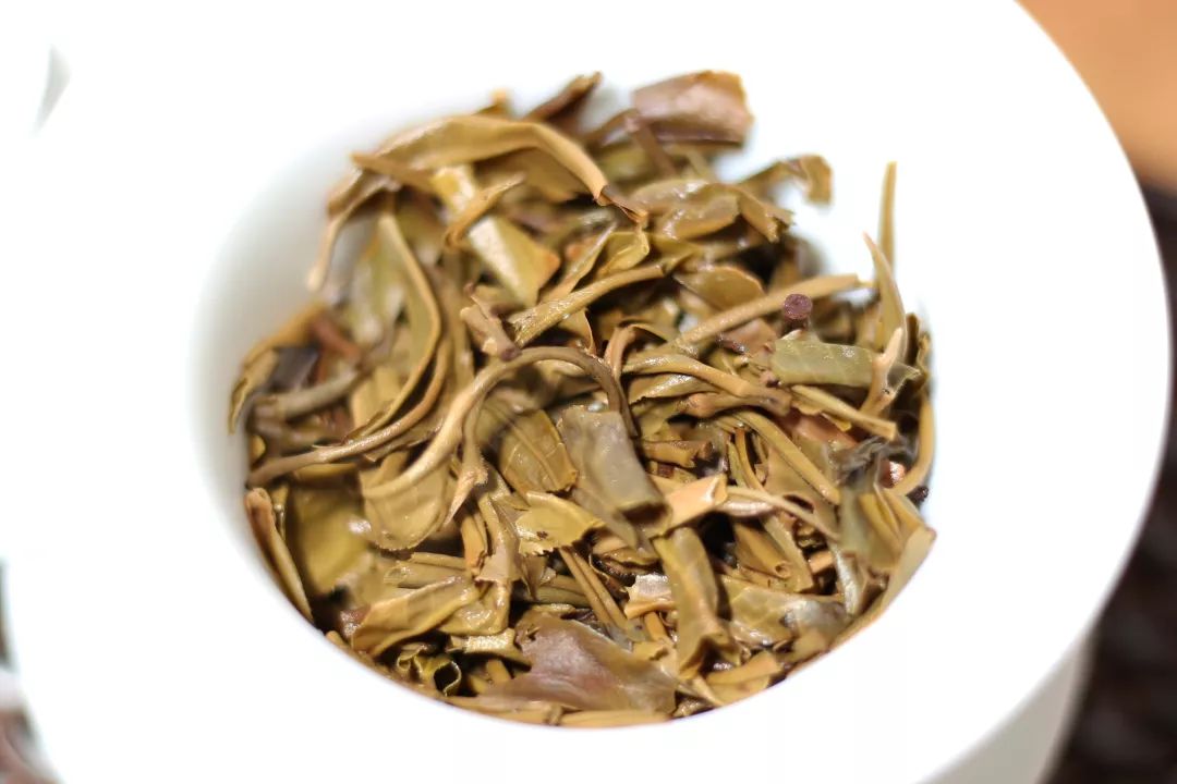 茶底,葉片肥壯油潤,芽葉嫩綠,少許紅色,葉徑分明清淅色淺,梗嫩無硬芯。嚼食有渣略苦。