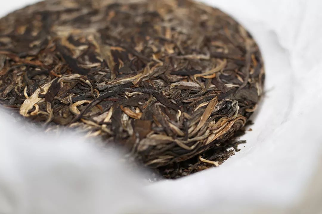 成品茶為200克小餅,手工石磨壓制。茶餅內(nèi)外一口料,色澤黃灰含褐蒼,芽頭明顯,銀灰毫絨覆面。氣味凈爽,煙隱蘭藏蜜幽。