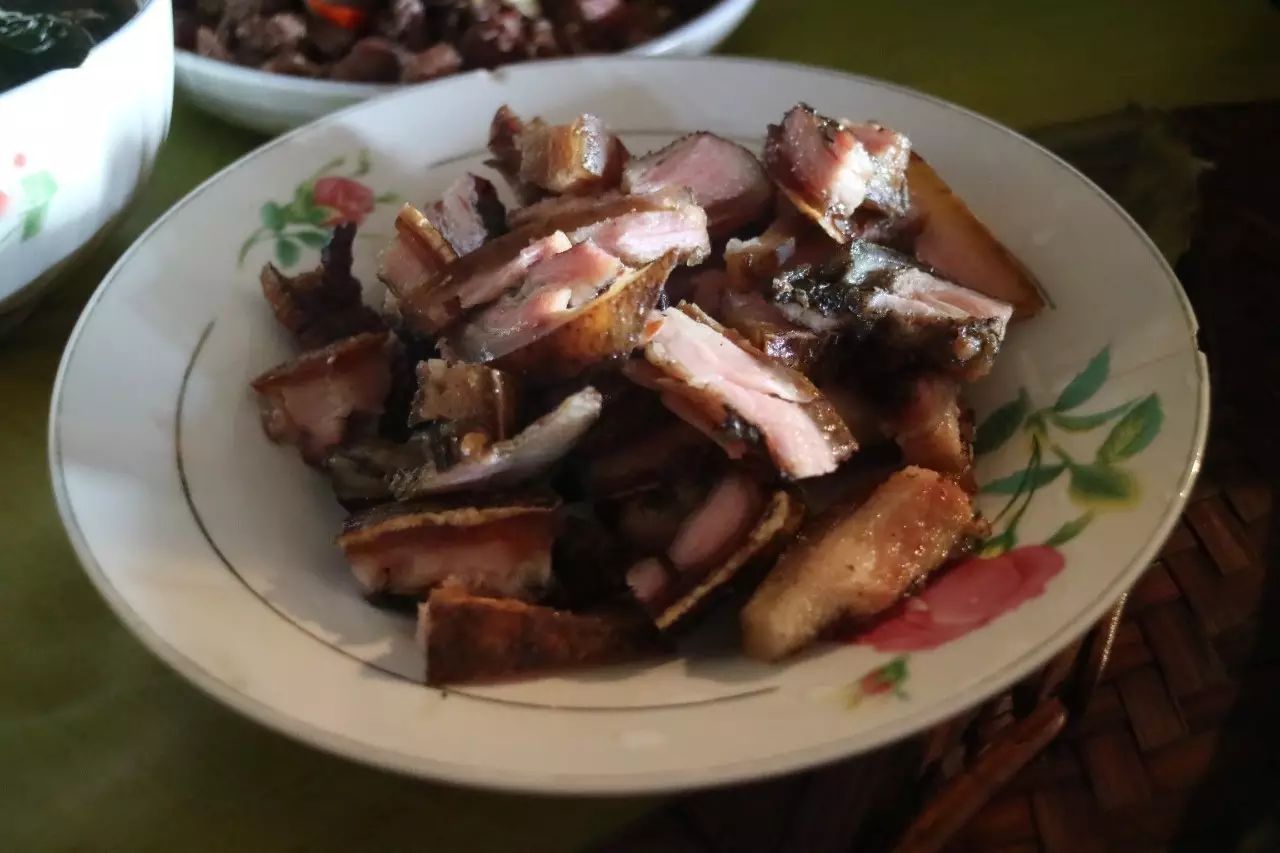 你看這最地道最原始的“山珍野味”,其實剛好是他們過年才有這么豐盛,有野豬肉,山羊肉,牛肉干巴,還有難得的麂子肉,苦竹筍,各種野菜,冬瓜豬肉湯......