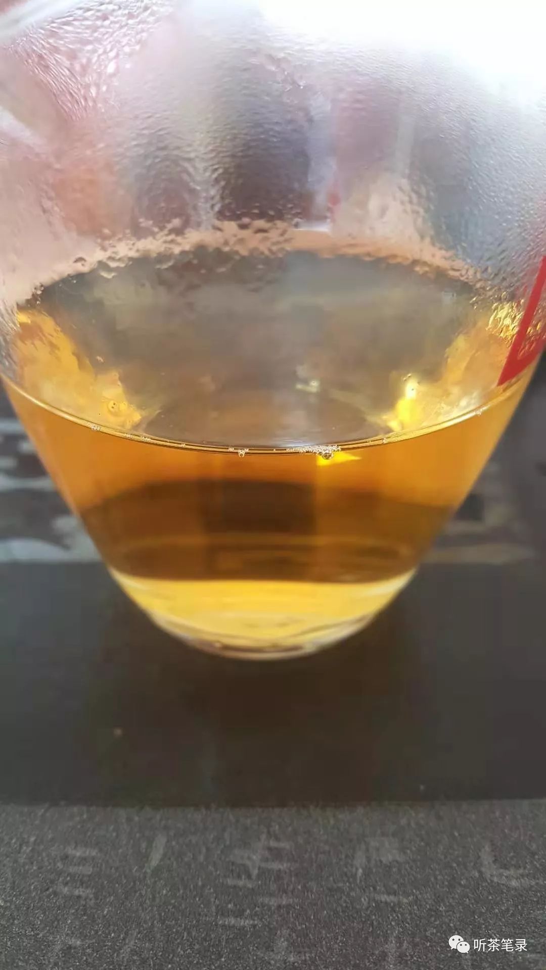 第九泡,湯淺金黃明亮,花果香甜變得較輕,甜度非常清晰,是一種非常清爽的感覺,水路還是維持在算是細(xì)膩的水平,公道杯甜度留存。再往后泡三五泡問題不大??慈~底,色澤青綠,葉面肥厚,油光柔軟,脈絡(luò)清晰,表現(xiàn)非常好。