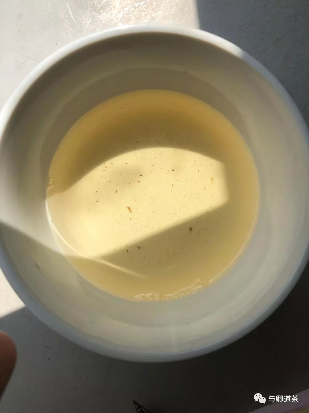 茶湯轉(zhuǎn)橙黃,透亮,點點蜜香,苦感稍微明顯了點,澀感快速上升,布局整個舌面,可以化開,但是相對較慢,回甘生津較慢