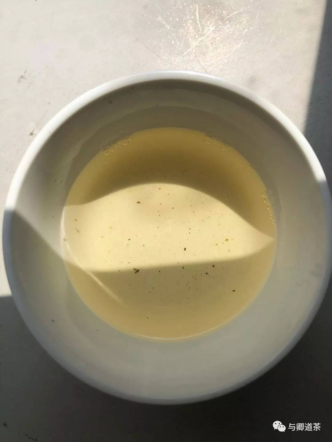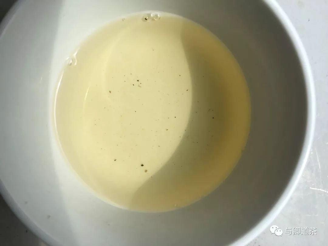 立馬出湯,湯色淡黃,茶湯入口,略顯甜味,淡淡苦澀,欠缺茶香。