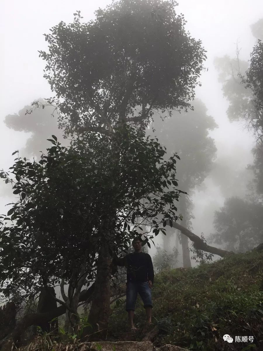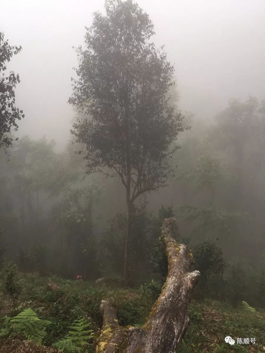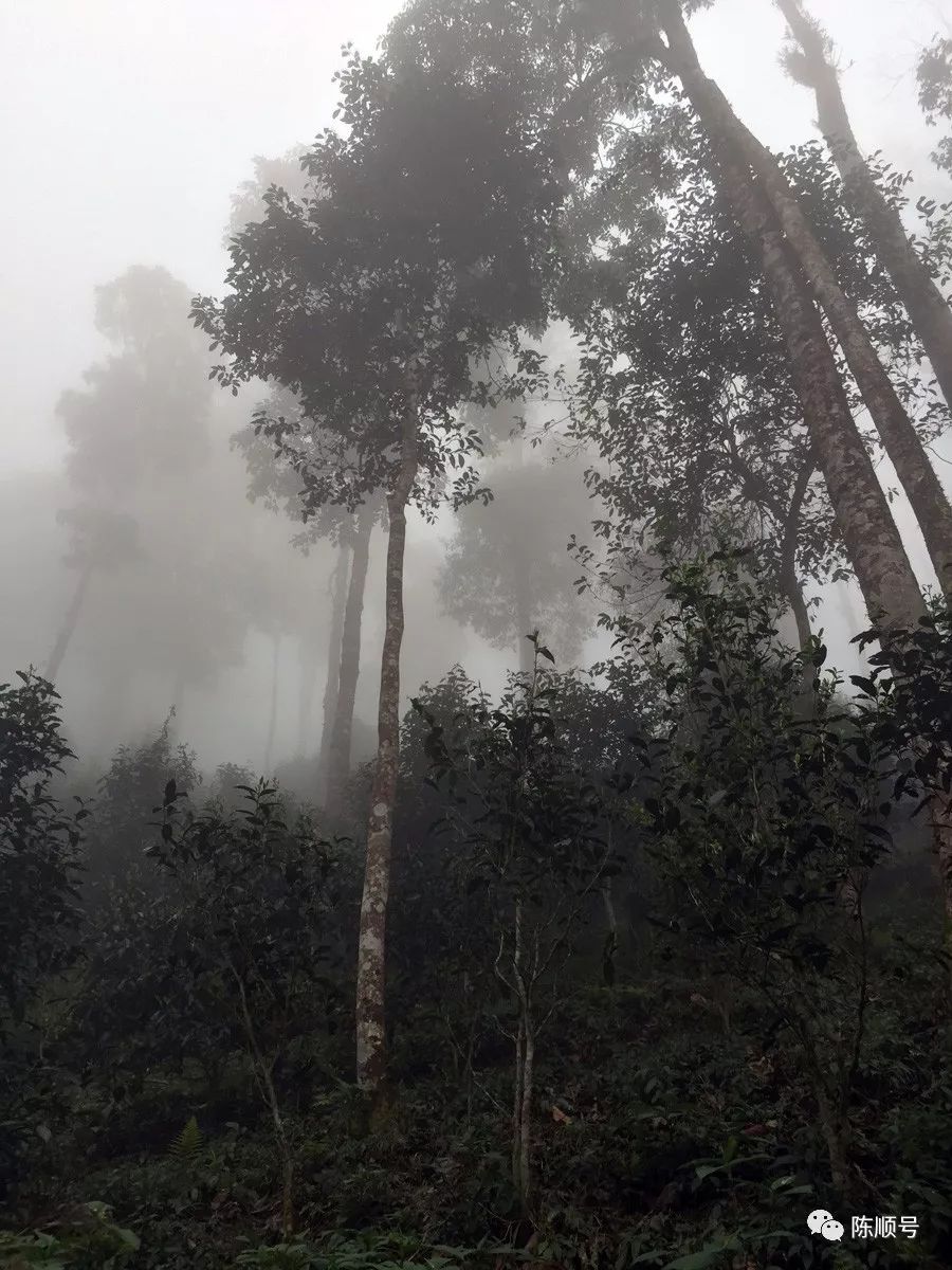 俗話說,高山云霧出好茶,好茶出在深山里。易武馬叭寨的海拔約1050米,天門山茶王樹所在位置的海拔約1680米,山頂海拔2000米以上。茶王樹高約20多米,直聳云霄。古茶園中,只要是不出太陽的天,林間霧氣繚繞,溫度濕度會讓人感到一陣陣涼意。霧氣很大,能見度很低,拍照都拍不清楚。