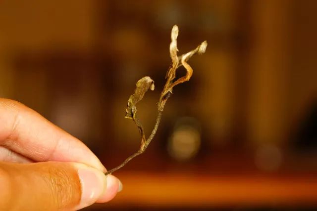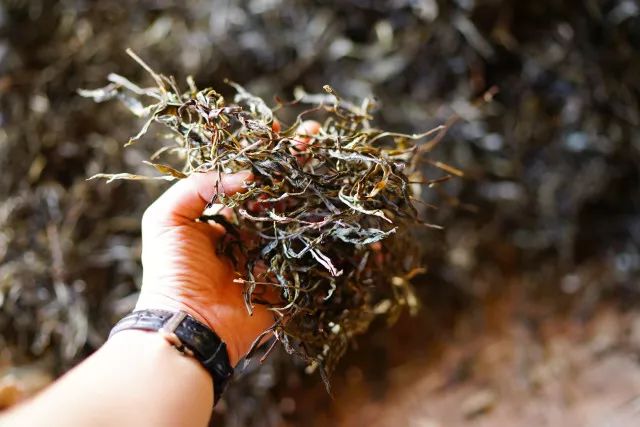 天門山的干茶條索粗壯狹長(zhǎng)極為顯眼,有的條索能有手掌那么長(zhǎng),條索顯得凌亂又狂野,與一般古樹茶比起來(lái)真得很獨(dú)特。