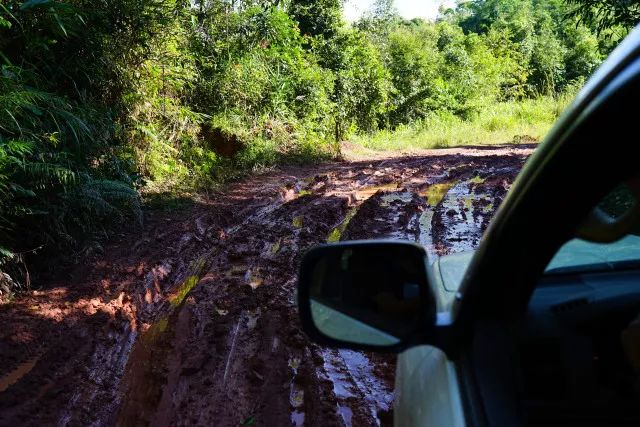去年秋茶,洪普號(hào)團(tuán)隊(duì)前往天門山時(shí)一路泥濘不堪,車輪都被厚厚的泥土所覆蓋,到了馬叭寨想去茶園自然就要倚仗摩托車,如果沒有熟悉路途的茶農(nóng)帶著可能就到老撾去了,就算經(jīng)常入山的茶農(nóng)騎著摩托車也極為小心翼翼,一失足可能就會(huì)掉下懸崖。