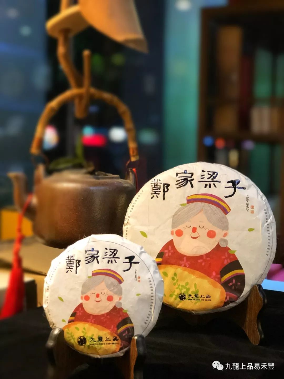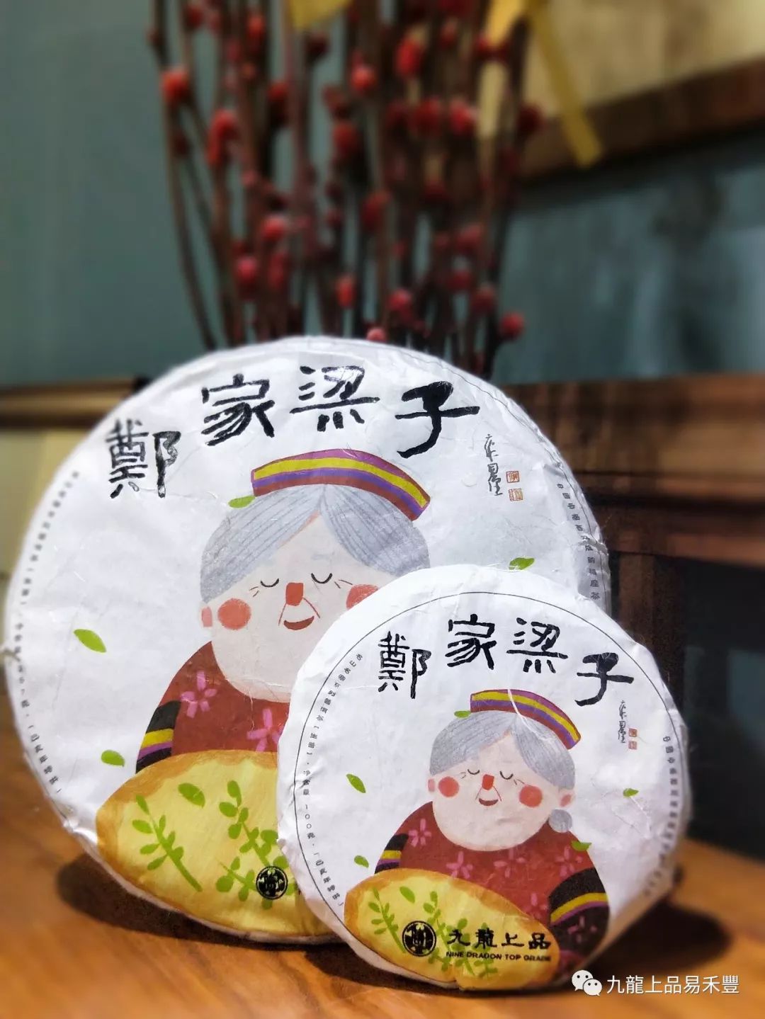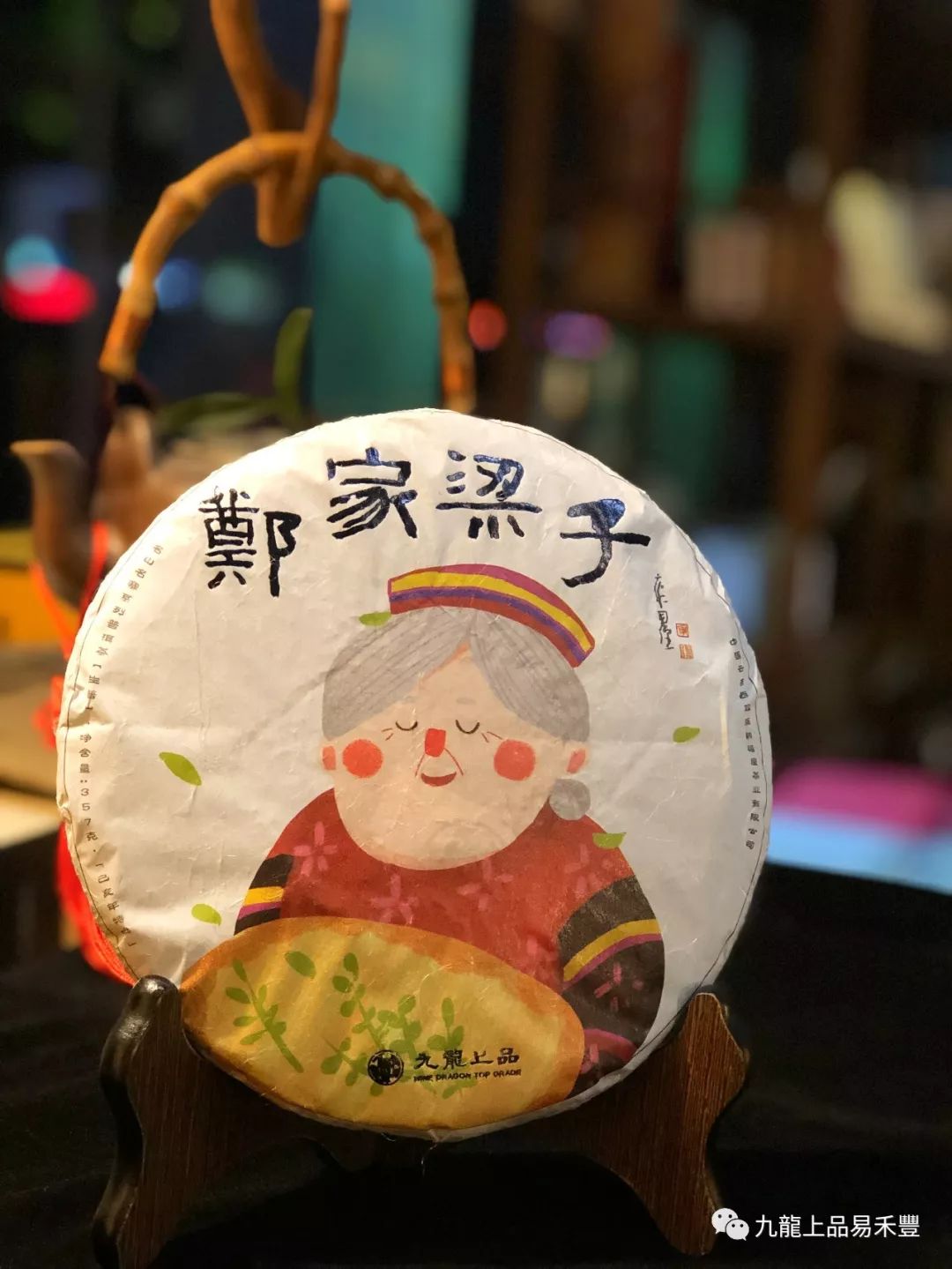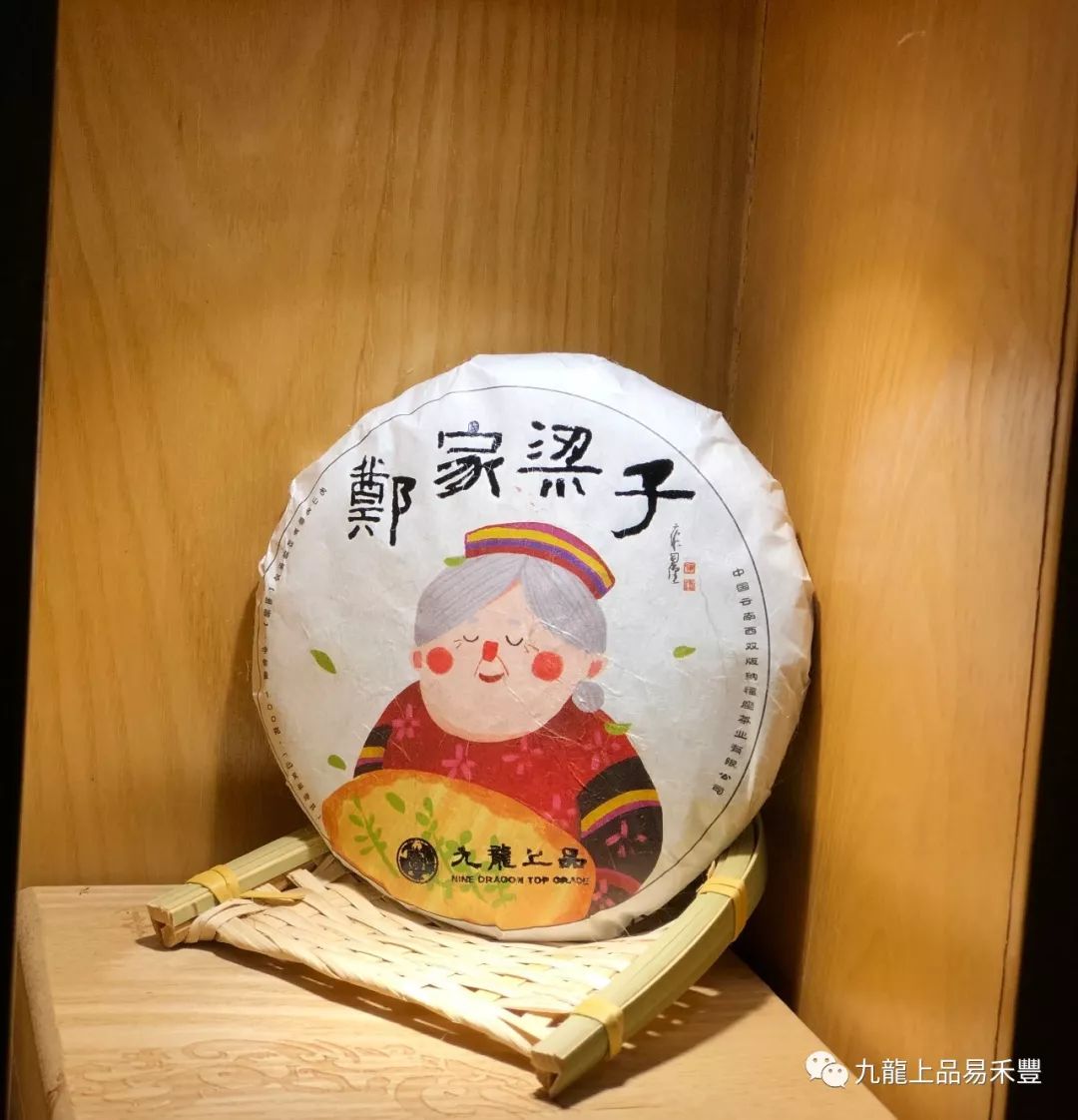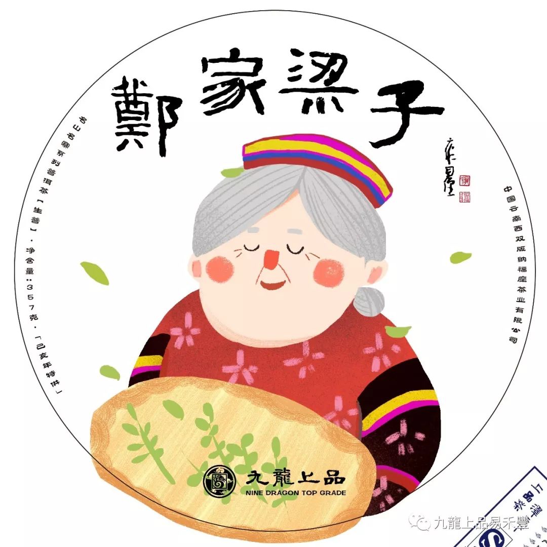 設計中為鄭家梁子老奶奶采茶的手繪圖案,身著瑤族服裝的老奶奶面帶笑容,陶醉于茶香之中。展現(xiàn)了地方民族特色及悠久的養(yǎng)茶制茶手藝,畫面生動卻又寧靜,給人以品茶的祥和心境。
