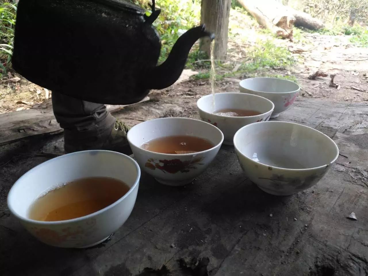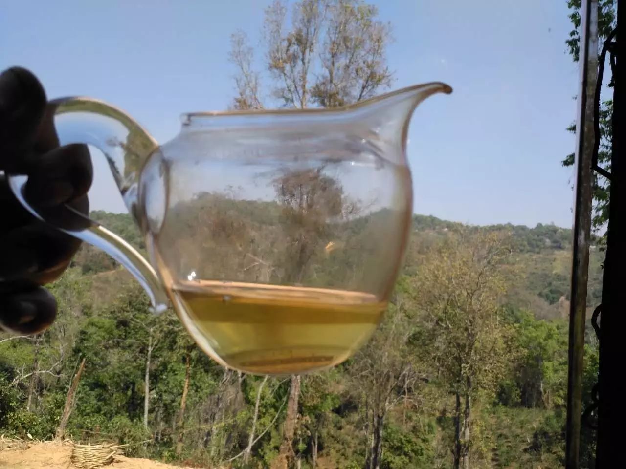 彎弓寨的古樹茶條索黑亮、湯色金黃通透、散發(fā)出蜜香蘭韻,滋味濃稠飽滿,獨具原始森林山野之魅力。