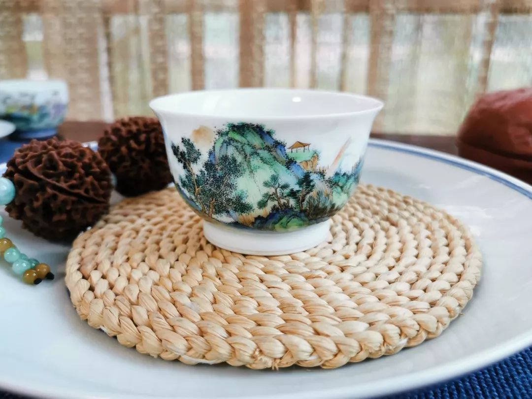 茶杯兩個都是小青綠山水圖案