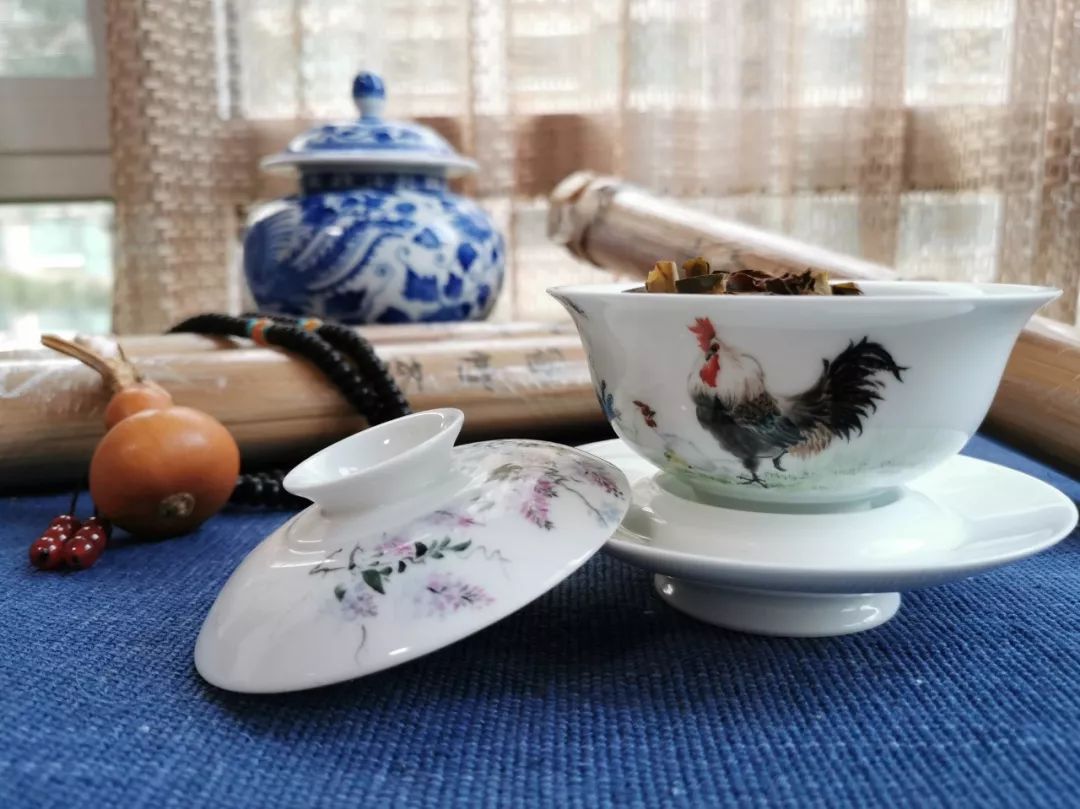 蓋碗一是紫藤公雞圖案