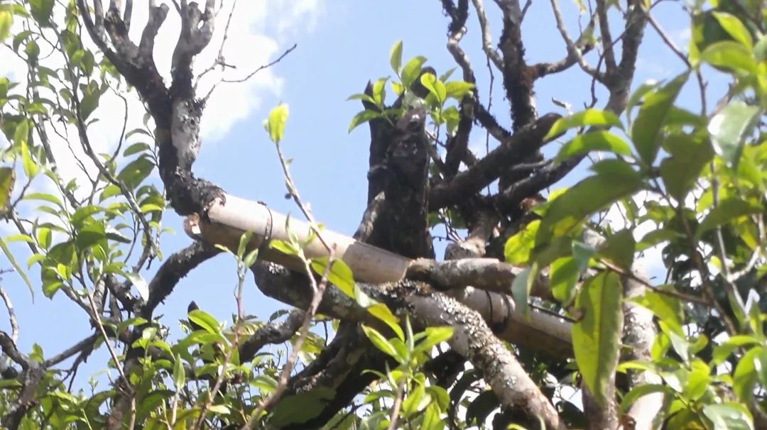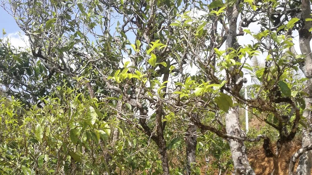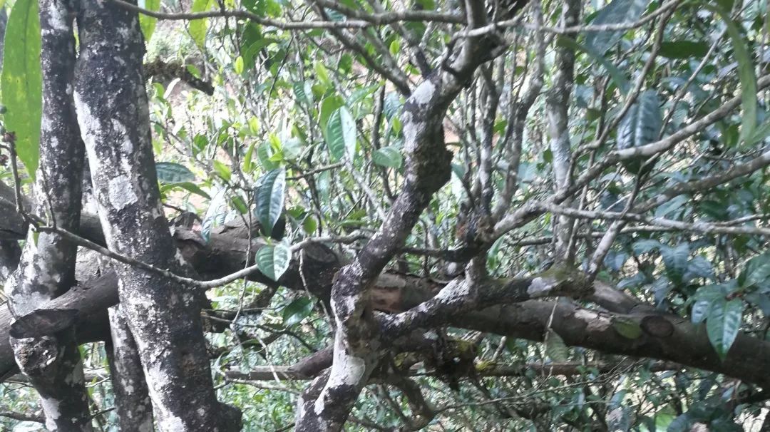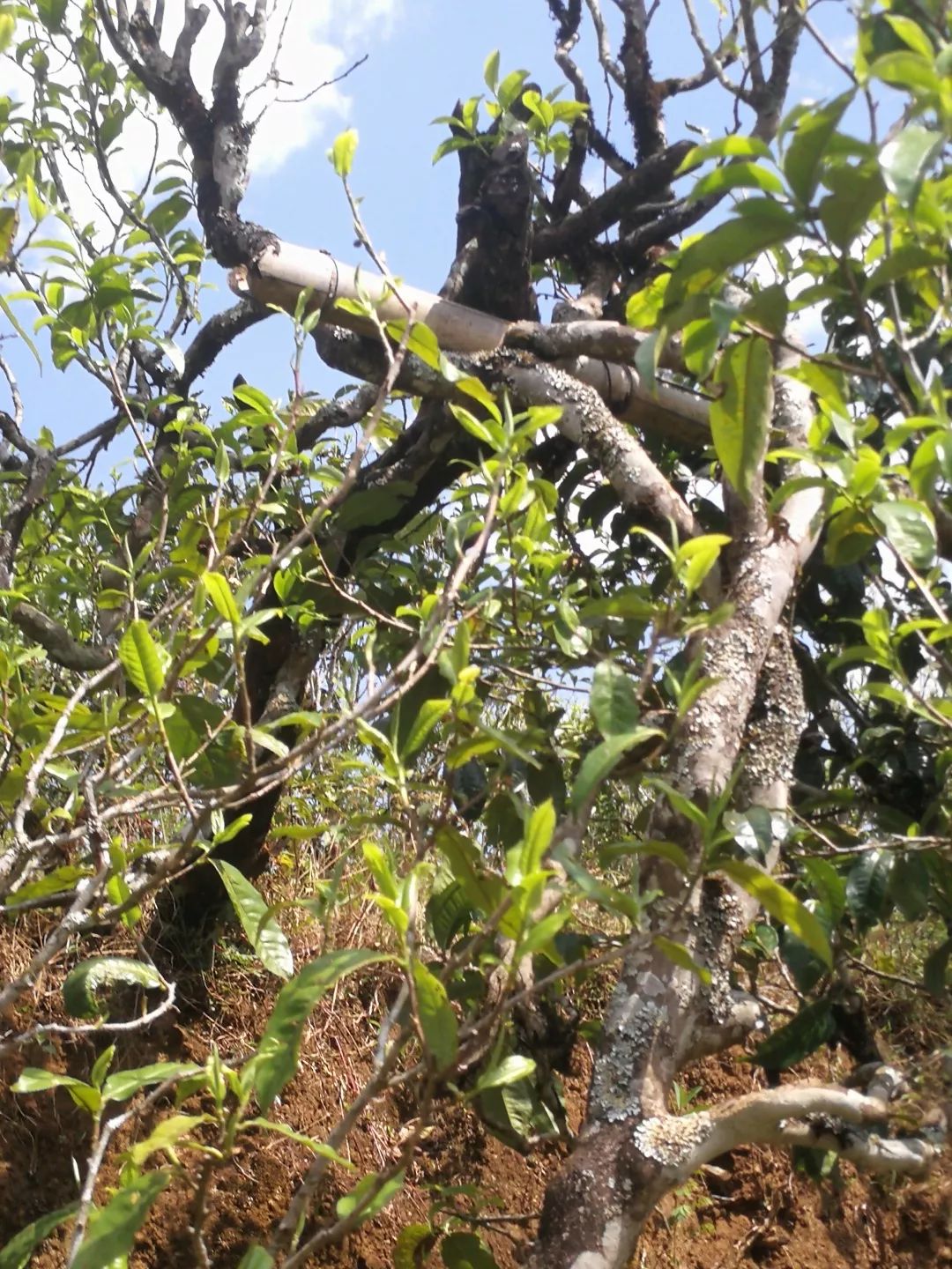 勐庫東半山以藤條茶聞名遐邇,那賽古茶樹很有特點,有傳統(tǒng)古茶樹蒼勁挺拔的主干,又融合了東半山藤條茶的形態(tài),茶樹或多或少都有藤條。