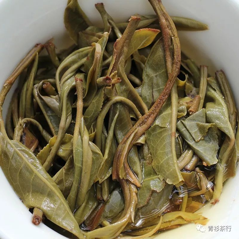 看條索,身披毫毛,短而絨,身骨不重,和易武茶的黝黑欣長不同,顏色漸變多。