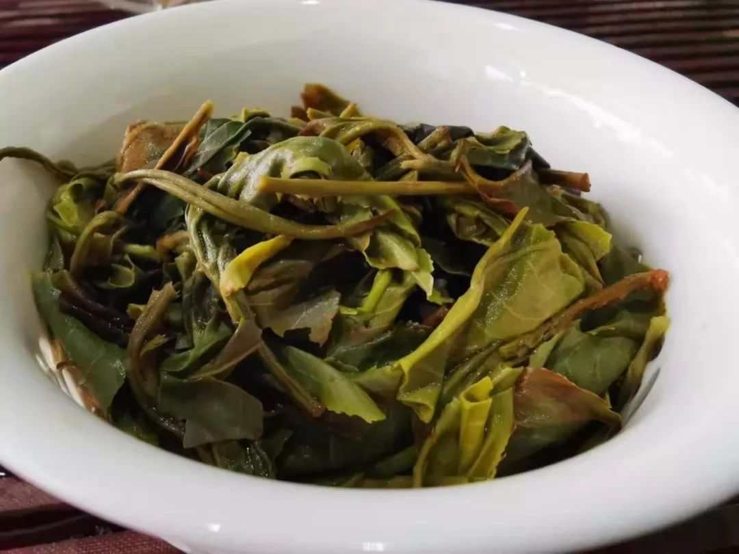 拿出來一些,還有照一下茶底拿出來后的感覺??梢悦黠@看到采摘和工藝要差一些。這么好的茶樹,如果工藝更到位,估計(jì)還會(huì)更好。當(dāng)然這樣的茶,如果重視了,可能價(jià)格飛了。我想,這可能是一款未挖掘的普洱寶藏。