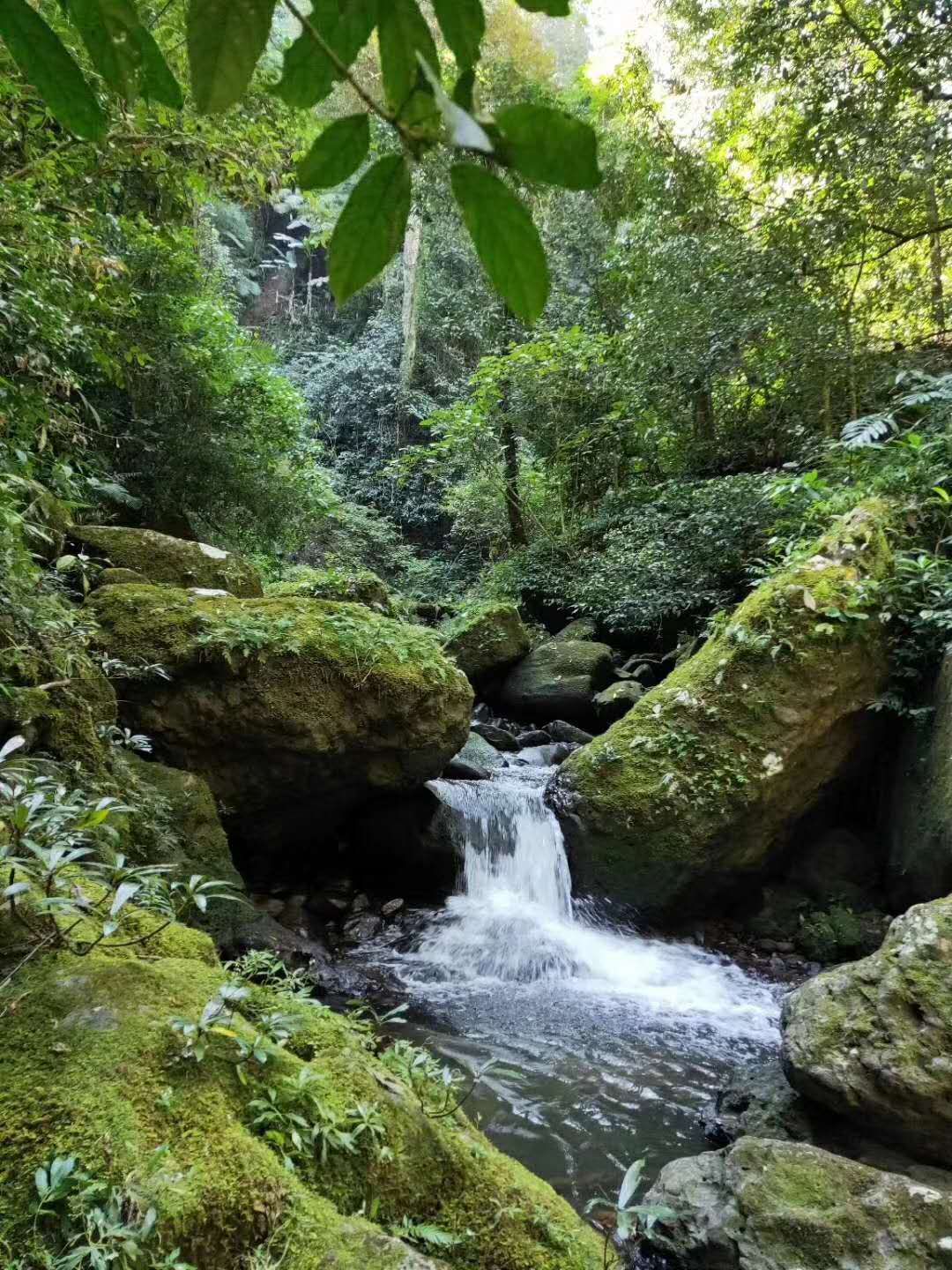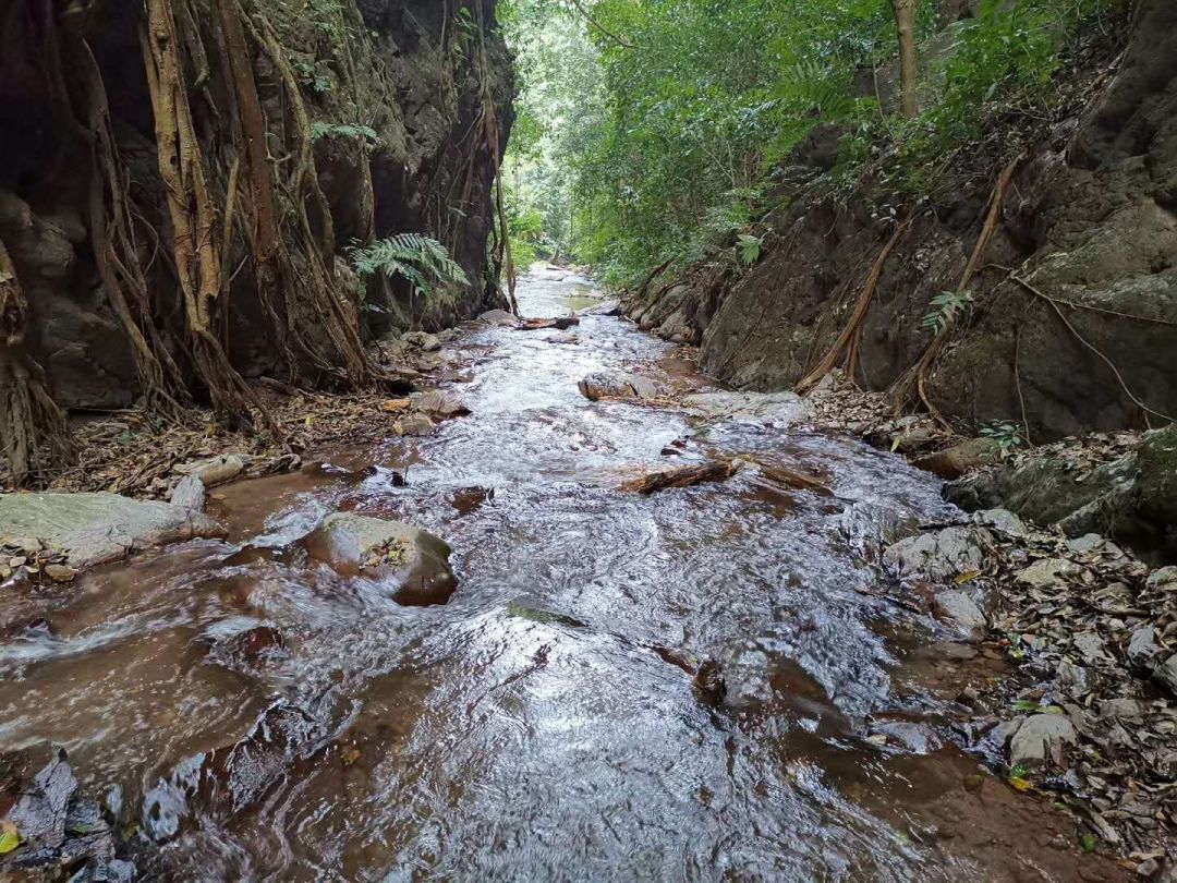 一條溪流從上而下,歡快奔涌。沿著這條河流逆水而上,一路風景讓人驚奇,山澗兩側是一棵棵參天大樹直插云霄,腳下的路讓你在河流中是深一腳淺一腳的前行,或在清溪中上下沉浮,或在淙淙的溪流中逆流而上,或在陡峭邊、瀑布旁攀巖而上。
