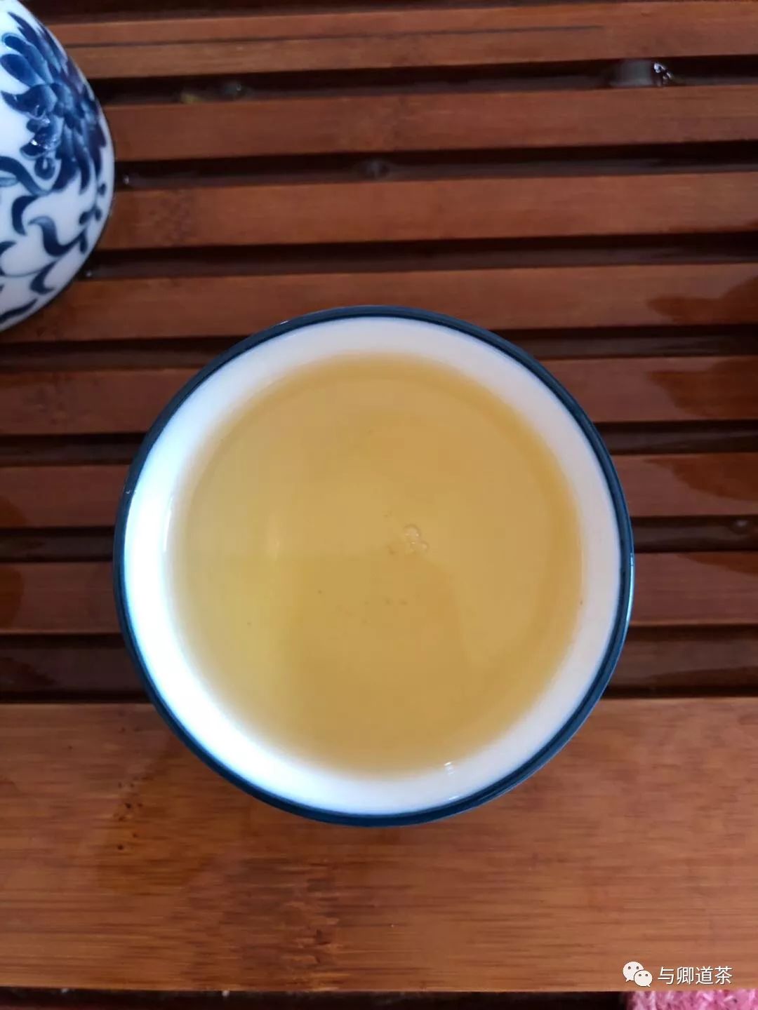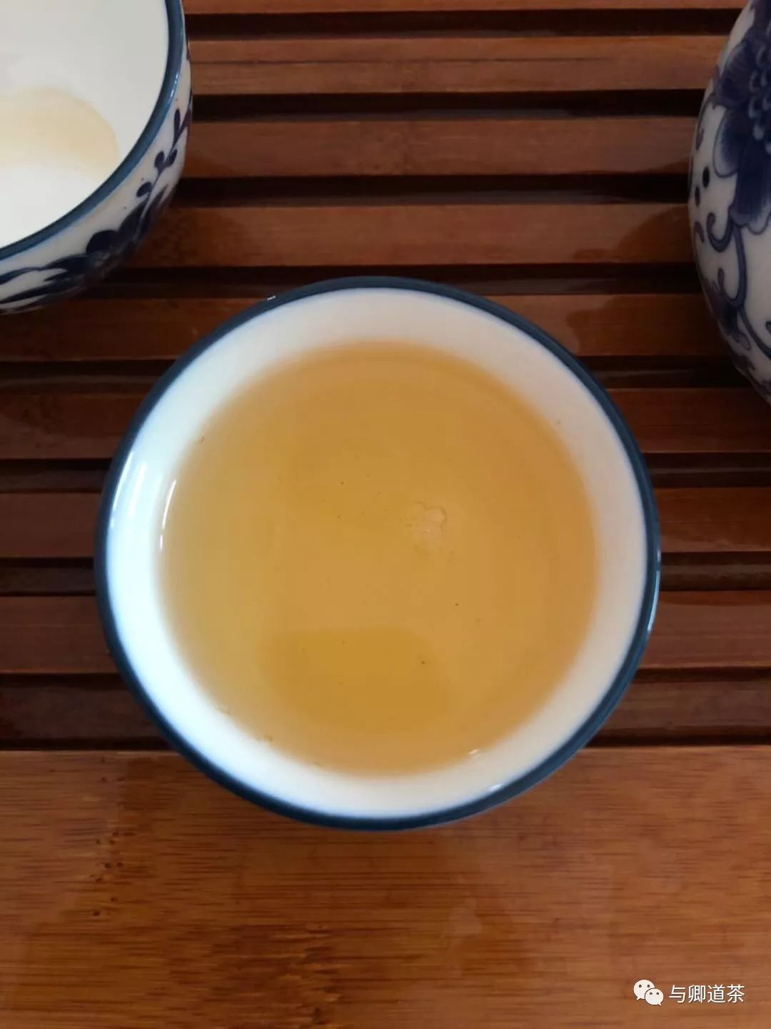 頭泡,5s出湯,茶湯略橙黃,清香,茶湯入口,略甜,帶點(diǎn)苦澀,很輕微。有掛杯底蜜甜。