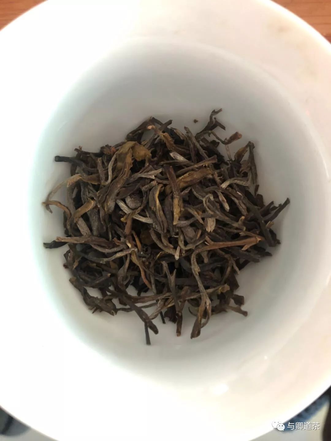 干茶條索較肥壯,較緊實(shí),略帶黃片和芽頭,感覺(jué)是人工切篩過(guò)后得到的。