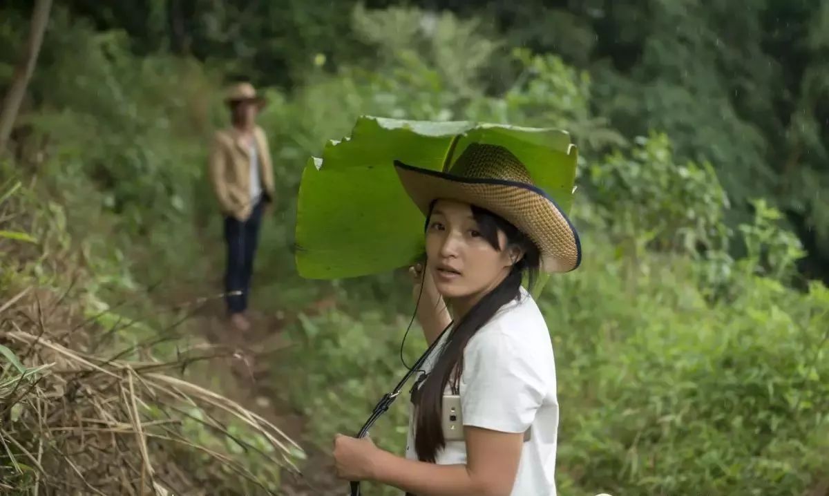 后面的同伴們快跟上,山上突下小雨,雨中搭著芭蕉葉繼續(xù)登山