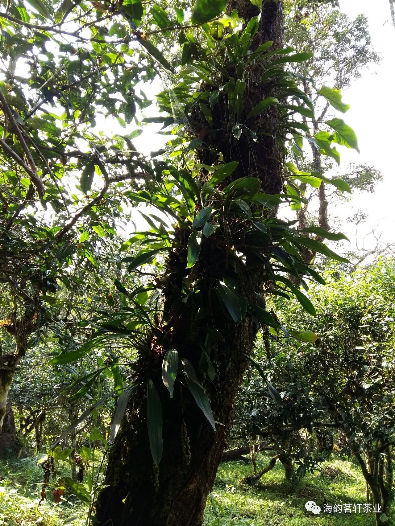 生態(tài)多樣的古茶園,茶林共生,茶園的雜木上生長著很多蘭花科植物