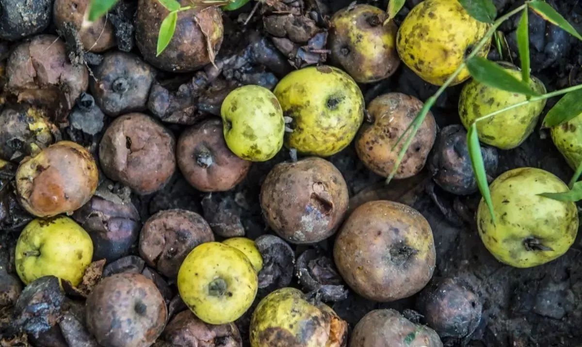 掉落在古茶園里的野蘋果(酸多依),是當(dāng)?shù)貝勰嶙迦俗钕矏鄣囊肮癄€后直接變成了養(yǎng)分供給古茶樹吸收