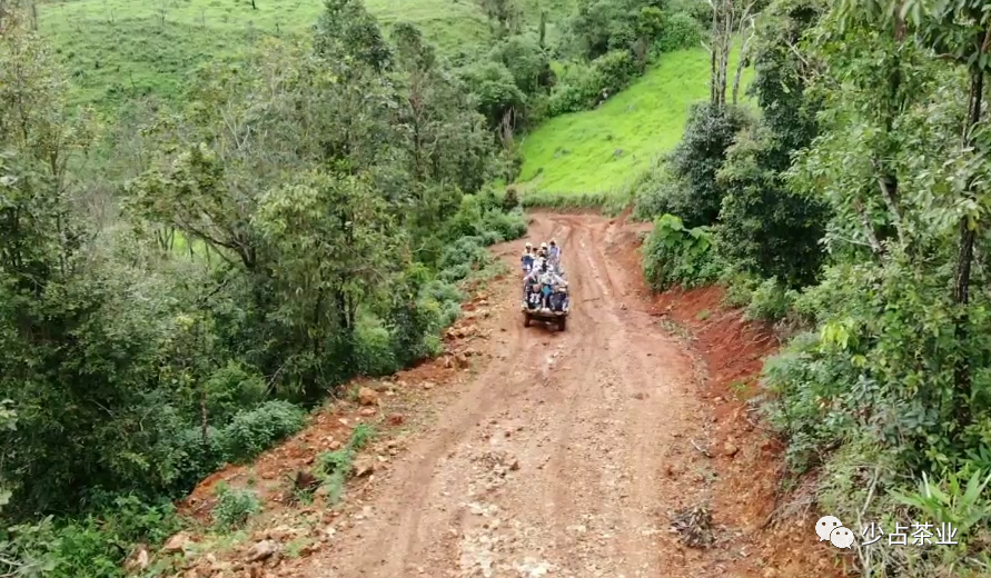 而尋找千年古樹茶,靠的可不是運(yùn)氣,喏,我們有神器——拖拉機(jī),當(dāng)然老司機(jī)和好向?qū)菢?biāo)配。從我們坐上拖拉機(jī)開始,已經(jīng)離原始森林更近了一步,一路上手機(jī)信號全無,在拖拉機(jī)突突的鳴響中,放眼望去,山嶺綿延,山巒迭翠、云霧繚繞,簡直太美了!顛簸了兩個小時,經(jīng)歷了數(shù)次上車、下車、推車之后,小伙伴已無暇顧及風(fēng)景,只想快點(diǎn)抵達(dá)目的地。