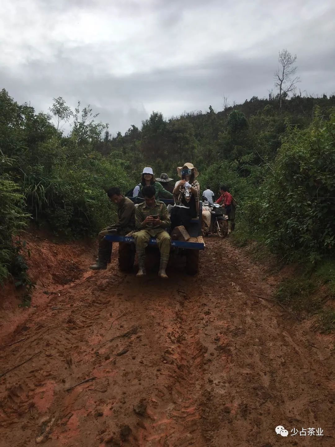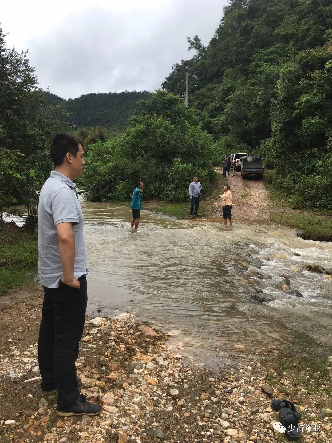 穿越原始密林小伙伴們都經(jīng)歷了啥?老撾屬亞熱帶地區(qū),道路崎嶇、叢林密集、野獸常有出沒,用“窮山險峻”來形容也不為過。經(jīng)過幾個小時的車程,采訪團(tuán)來到老撾川壙省為茶而來,第一站自然是老撾古樹茶廠,驅(qū)車在泥濘的道路上行進(jìn)了一個小時后,我們遇到了“攔路虎”,因?yàn)楫?dāng)?shù)剡B日大雨導(dǎo)致河水暴漲,橫在眼前的小溪變成了河流,水深且湍急。