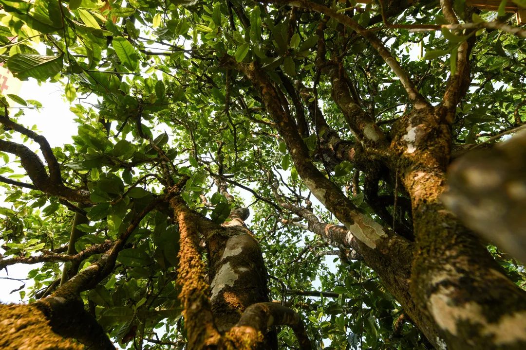 茶樹長(zhǎng)得密密麻麻,估計(jì)是栽種的時(shí)候間距太小,很明顯不適合胖子采摘、管理。茶樹的根部略粗一些,接近半米的高度,被人為矮化過,能清晰地看到被砍過的痕跡;再往上,是略細(xì)的分支,每棵茶樹都有五六個(gè)分支,一米左右的高度。