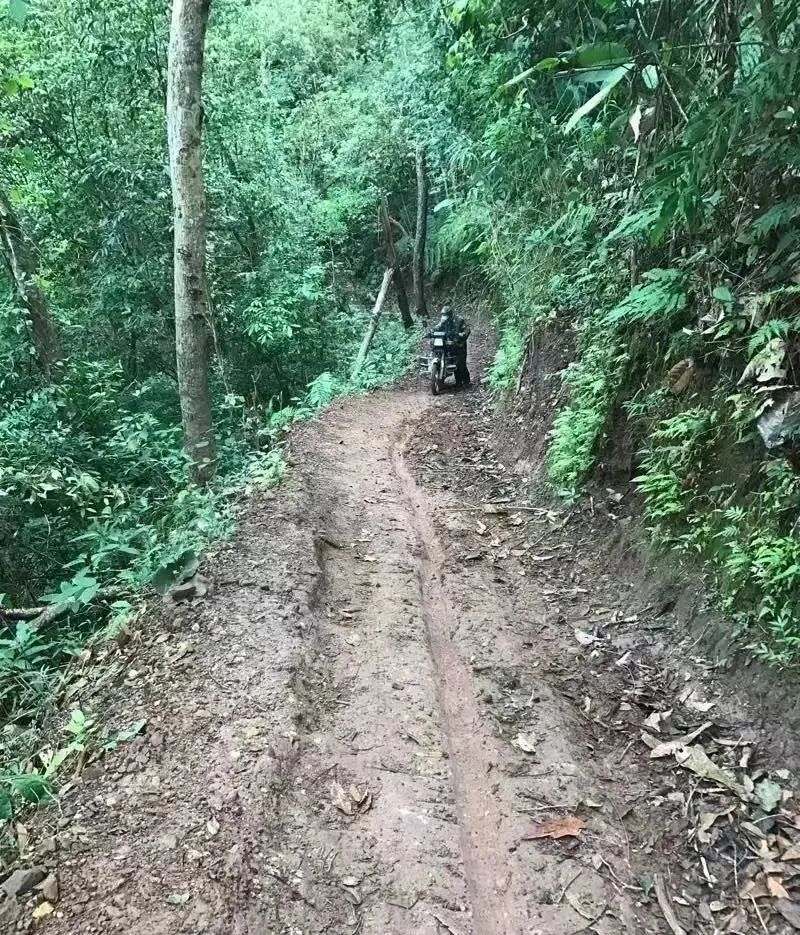 去往白茶園的路途是艱辛的,頻繁的上下坡及其考驗駕駛摩托車的技術與騎車人的心理。陡峭的山路增加了進入白茶園的難度,再加上個別路段還要下車徒步,無時無刻不考驗著來訪者的耐心與毅力。