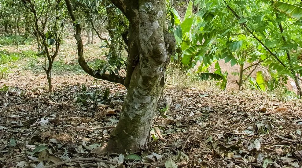 而在懂過的茶地中,隨便挑選一棵茶樹,其樹干直徑幾乎都與我小臂長(zhǎng)度相當(dāng),還有相當(dāng)一部分茶樹的直徑要更寬。