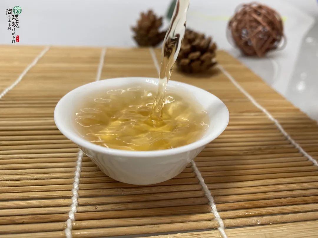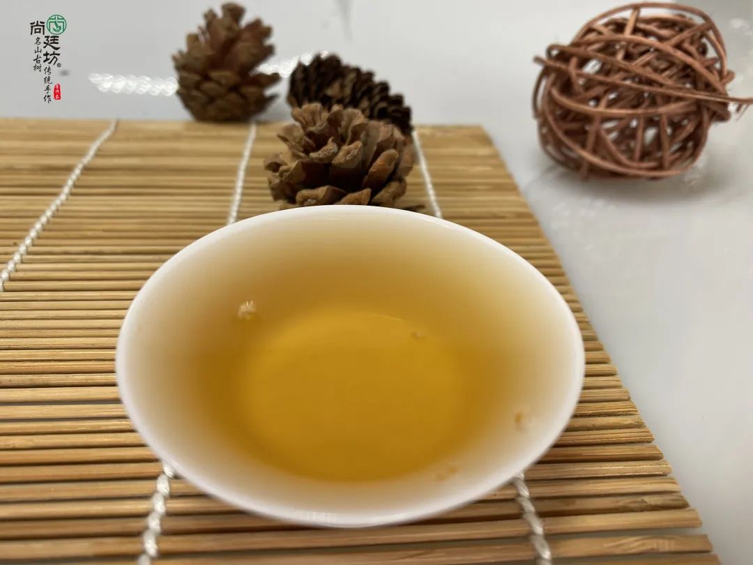 沖泡后,湯色明黃透亮,有一種花香,香氣優(yōu)雅,滋味甘醇順滑,典型易武茶。