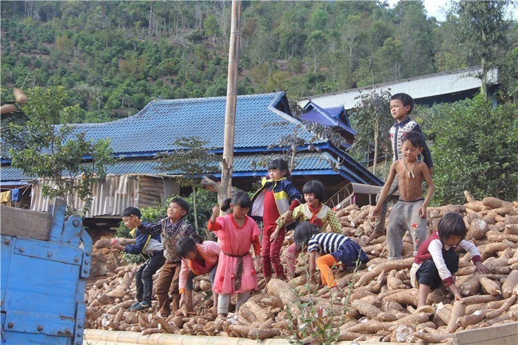 村里的小孩們正興高采烈的把大堆的木薯往卡車上扔(當(dāng)?shù)厝朔Q“大樹山藥”,可去皮、洗凈、切塊后蒸食等多種吃法,那口感,呵呵。。。流口水了!但食用方法不對會中毒的哦!具體的還是咨詢一下會的人或著百度一下哦!)這樣一大堆的木薯,想來應(yīng)該也有不少的收入了吧!