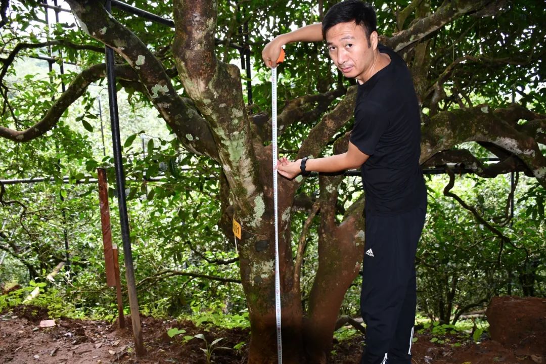 這棵半坡新寨的茶樹(shù)王,實(shí)地測(cè)量:海拔1470m,樹(shù)圍1.4m,樹(shù)高8.6m