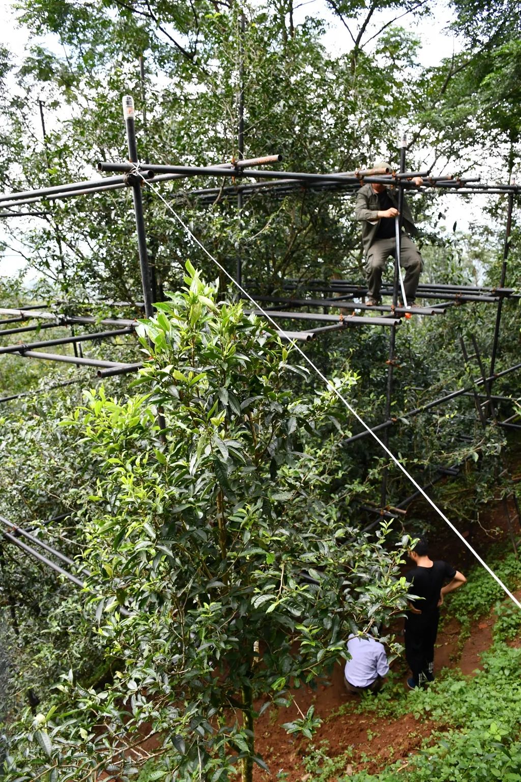 僾尼妹子大得(漢名龍秀珍)在大茶樹(shù)上采茶