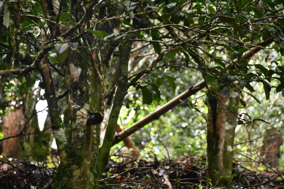 在南糯山諸多寨子中,丫口兩個寨子的古茶樹不算少,有上千畝以上,古樹成林成片,村寨周邊,村寨里面,古茶樹隨處可見,分不清是茶在寨中,還是寨居于茶園了。