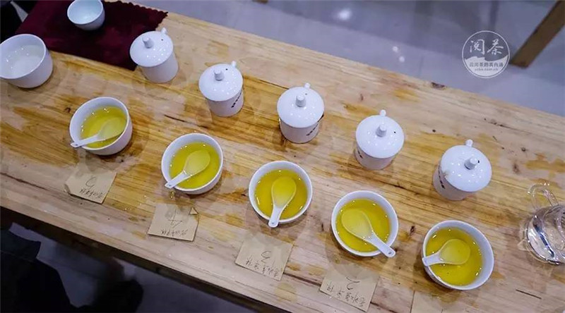 我們將老村長(zhǎng)前一天做的兩棵單株跟我們的三棵單株放在一起開(kāi)湯審評(píng)。